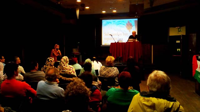Malainin salama kazetari sahararrak gatazkaren egungo egoeraren berri eman zigun eta Joseba Apaolaza aktoreak bere testigantza ekarri zuen, aktore lanetan zonalde liberatuak eta bisitari moduan gune okupatuak bisitatu baitzituen, bertan sahararrek bizi duten zapalkuntzaren berri emanez. Oso giro onean, jan-edanak eta teak lagunduta, Mohamed Embarek musikari eta kantariak, gaztelaniaz eta hassaniaz konposatutako abesti ederrak ekarri zizkigun eta baten bat dantzan ere ausartu zen.