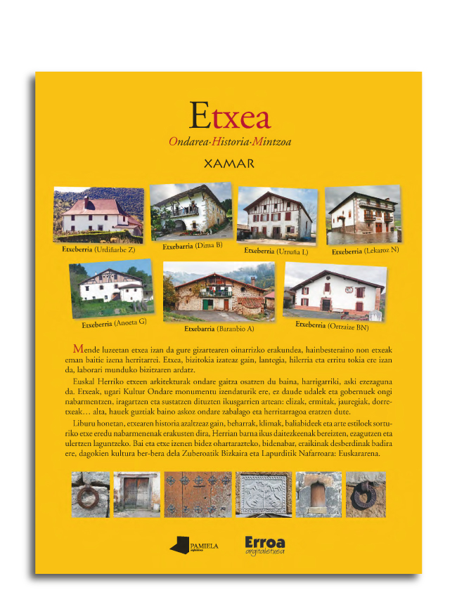 Liburu honetan, etxearen historia azaltzeaz gain, beharrak, klimak, baliabideek eta arte estiloek sorturiko etxe eredu nabarmenenak erakusten dira, Herrian barna ikus daitezkeenak bereizten, ezagutzen eta ulertzen laguntzeko. Bai eta etxe izenen bidez ohartarazteko, bidenabar, eraikinak desberdinak badira ere, dagokien kultura ber-bera dela Zuberoatik Bizkaira eta Lapurditik Nafarroara: Euskararena.